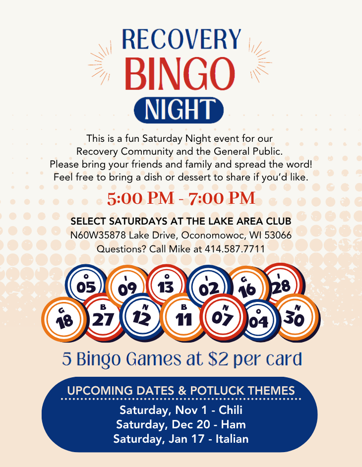 Upcoming Saturday Night Recovery BINGO & Potluck