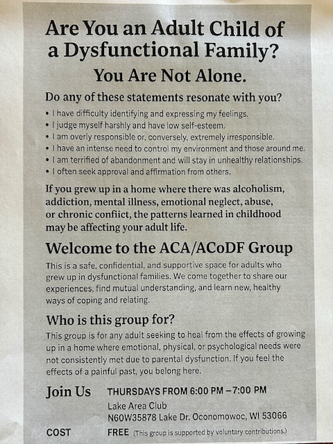 ***NEW*** ACA - Adult Children of Alcoholic/Dysfunctional Families 6:00 pm ... more info