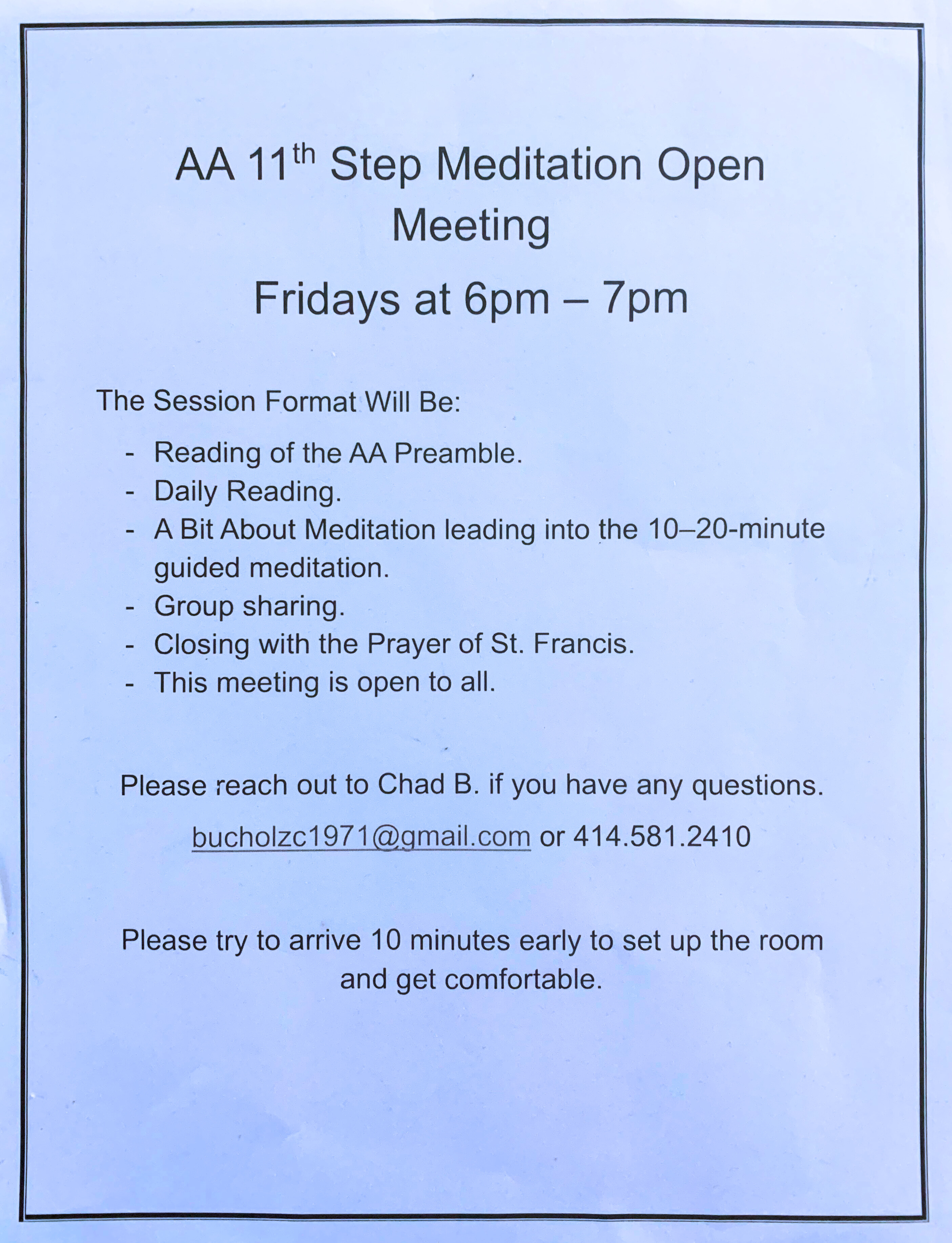 ***NEW*** OP (Open Meeting) 6:00 pm - 11th Step Meditation Meeting